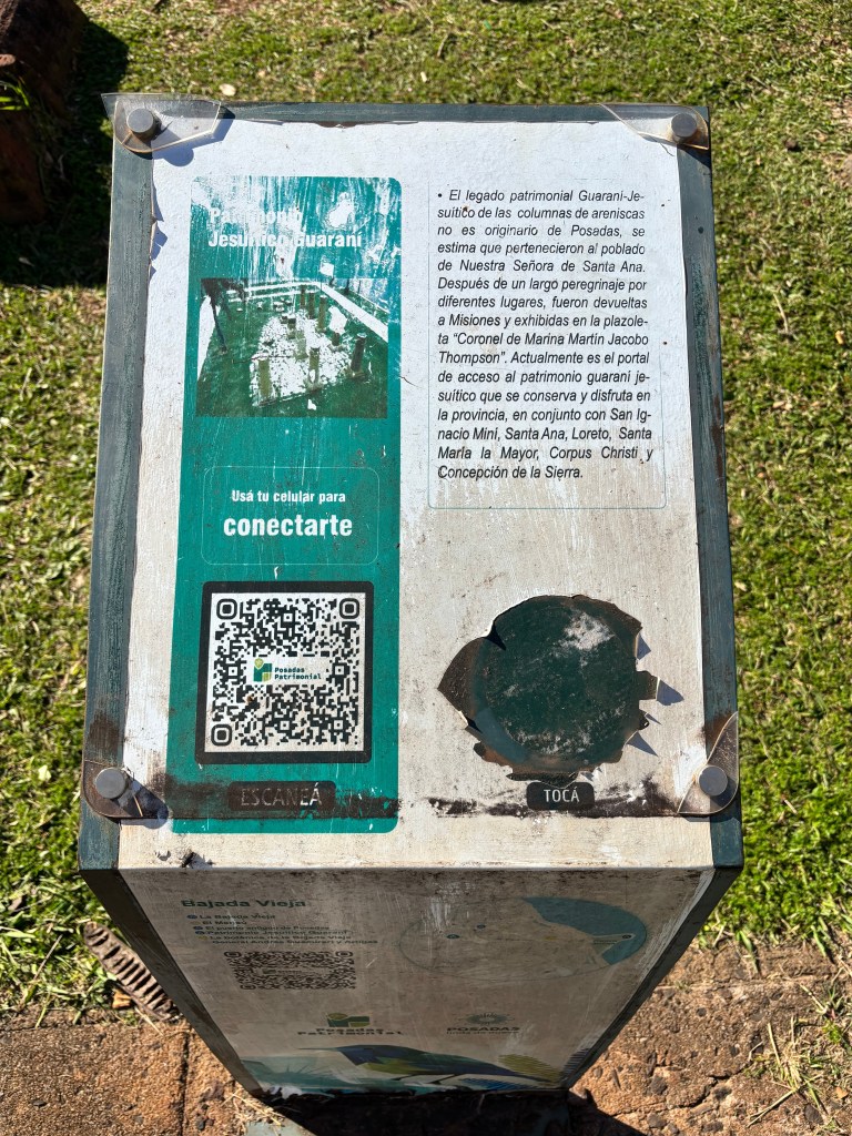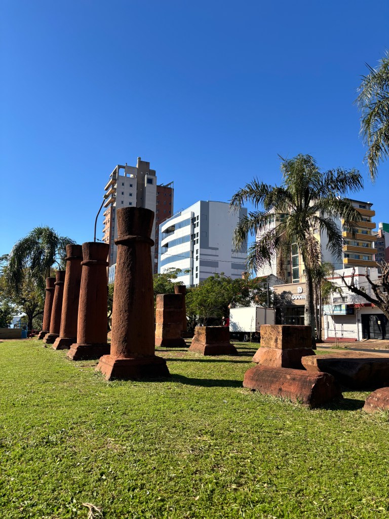 Right in the center of Posadas, at the corner of Roque Pérez and Buenos Aires, you’ll find something unexpected: a series of massive carved stone columns, carefully arranged on a small grassy strip between the lanes of city traffic. Most people walk past them without a second glance. But if you pause for a moment, you’ll notice something: a sign, a QR code—and a story worth telling.
